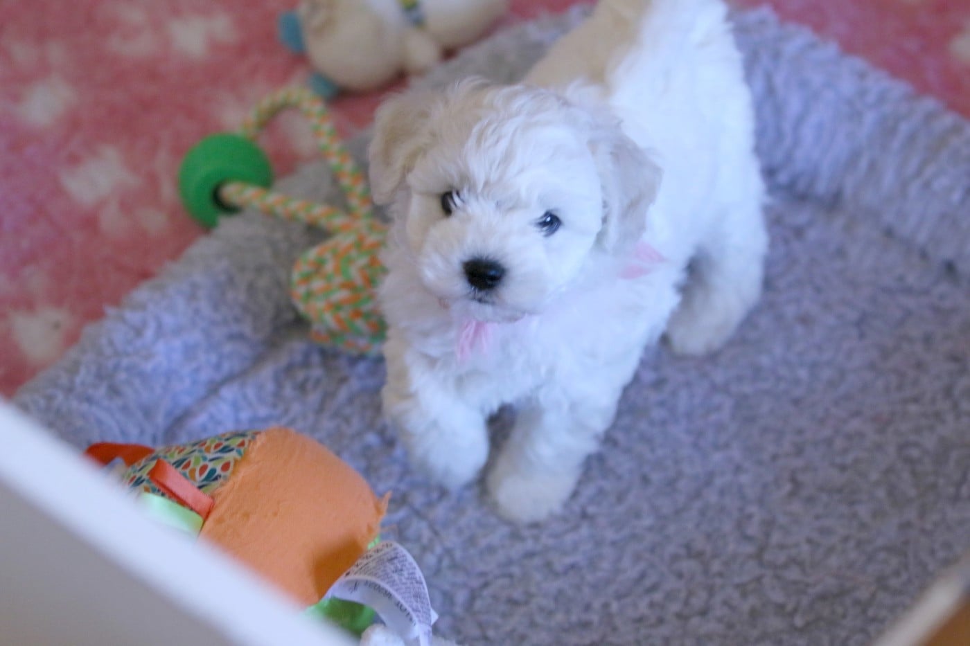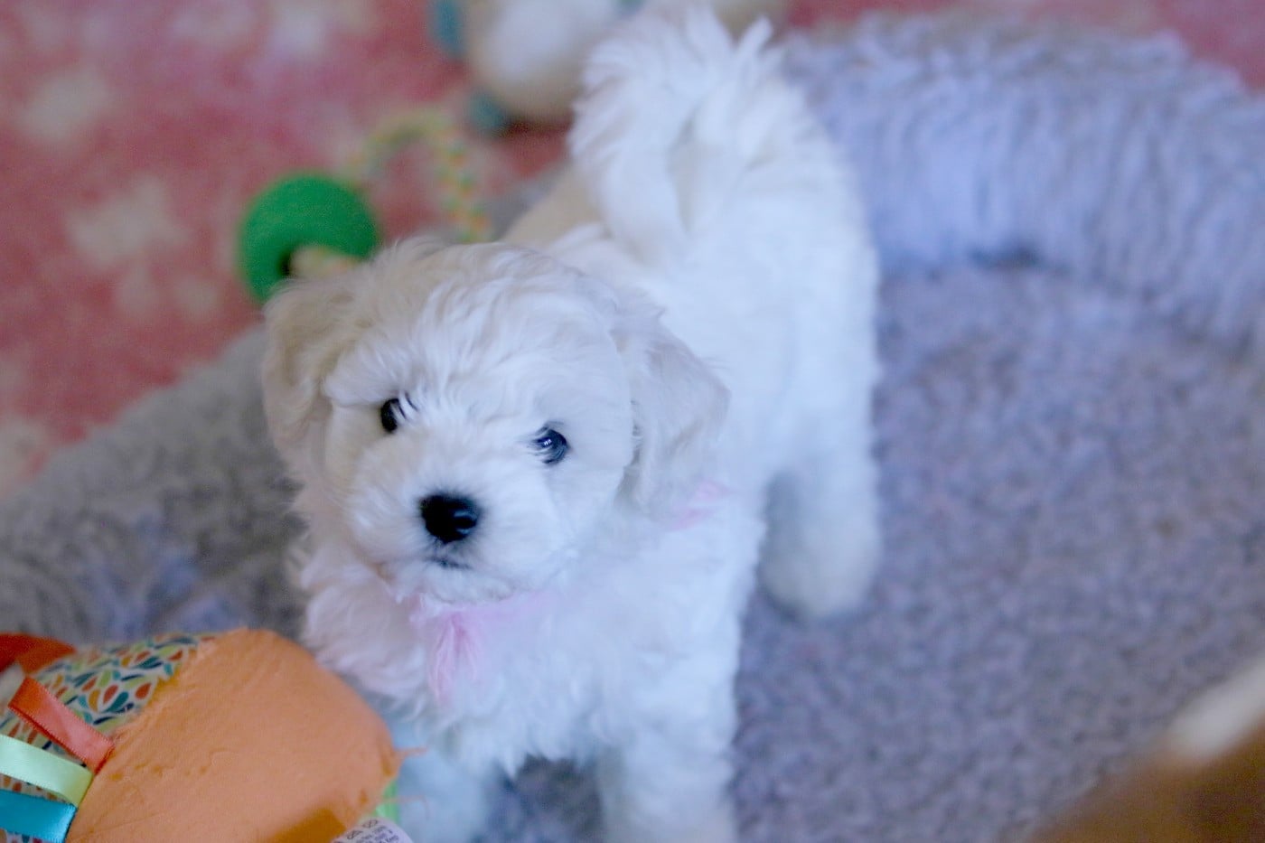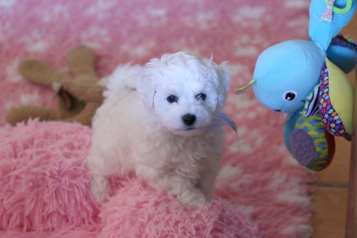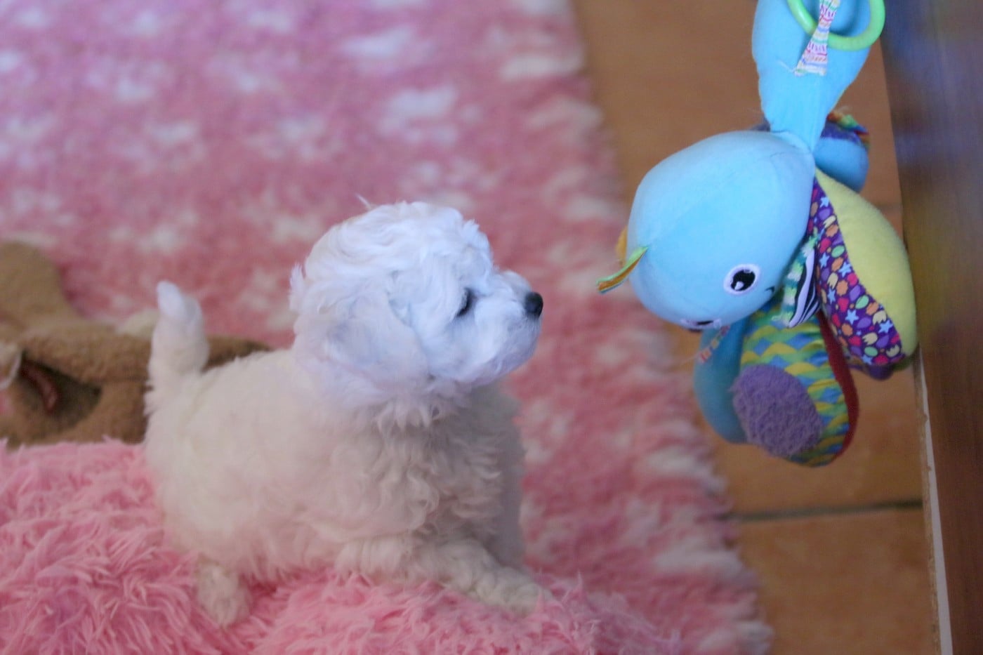 Pour faciliter la transition dans sa nouvelle famille, votre chiot partira avec son tapis et ses jouets.